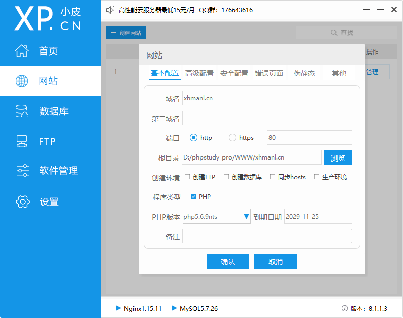 一、新增本地站点